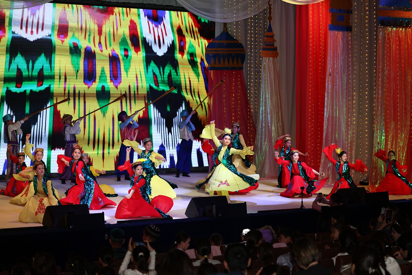 Вокальные партии, исполненные педагогами Центра творчества, стали прекрасным дополнением к танцевальным номерам, создавая атмосферу полного погружения в мир Востока. Особо хочется отметить юных талантов: воспитанников ОВК «БИС» Алиева Актилека и объединения «Школа гармоничного развития «Умный малыш» Мухамбеткызы Диляру и Мурзахметова Амира, принявших участие в концертной программе.